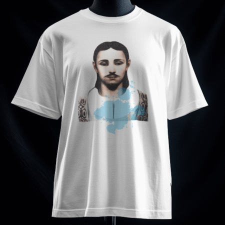 تیشرت آدمک (رنگ آبی) صددرصد نخ و از الیاف طبیعی تهیه و تولید شده است و از تولیدات گیومرث استایل است. این تیشرت تولید ایران است و در تولید آن از بهترین پارچه استفاده شده است. دوخت این تیشرت نیز بسیار با کیفیت و ماندگار است. بر روی این تیشرت نگاره یک آدمک جنگجو نقش بسته است.
