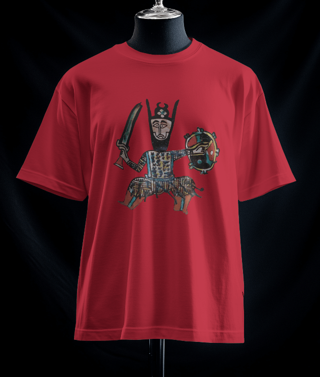 تیشرت آدمک (رنگ سرخ) صددرصد نخ و از الیاف طبیعی تهیه و تولید شده است و از تولیدات گیومرث استایل است. این تیشرت تولید ایران است و در تولید آن از بهترین پارچه استفاده شده است. دوخت این تیشرت نیز بسیار با کیفیت و ماندگار است. بر روی این تیشرت نگاره یک آدمک جنگجو نقش بسته است.