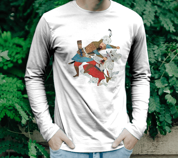 تیشرت خوان هفتم نبرد رستم با دیو سپید را به تصویر کشیده است.