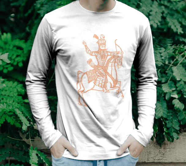 بر روی این تیشرت نگاره رستم برجسته ترین چهره شاهنامه نقش بسته است.
