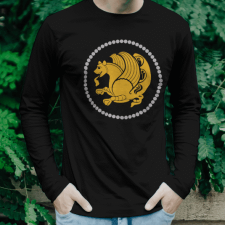 بر روی این تیشرت آستین بلند نگاره سیمرغ ساسانی نقش بسته است.