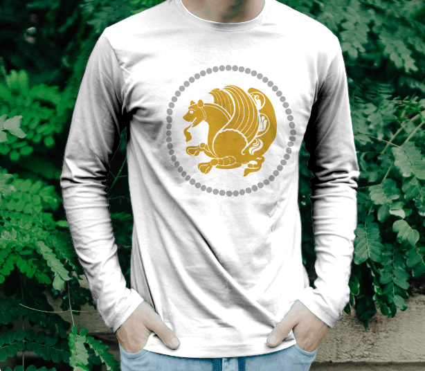 بر روی این تیشرت آستین بلند نگاره سیمرغ ساسانی نقش بسته است.