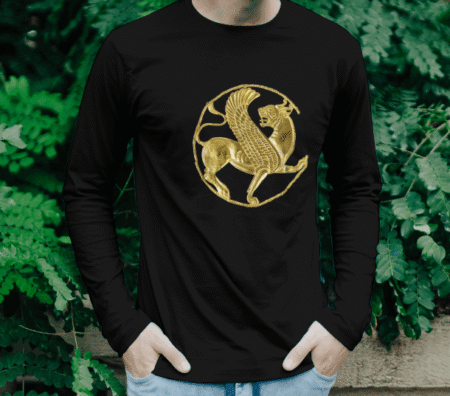 بر روی این تیشرت آستین بلند نشان شیردال نقش بسته است.