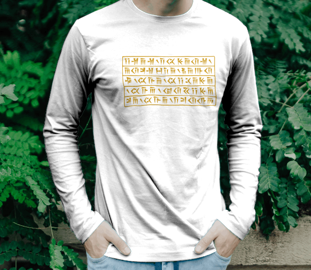 تیشرت آستین بلند نیایش داریوش بزرگ به خط میخی (رنگ سفید)تولید گیومرث استایل است.