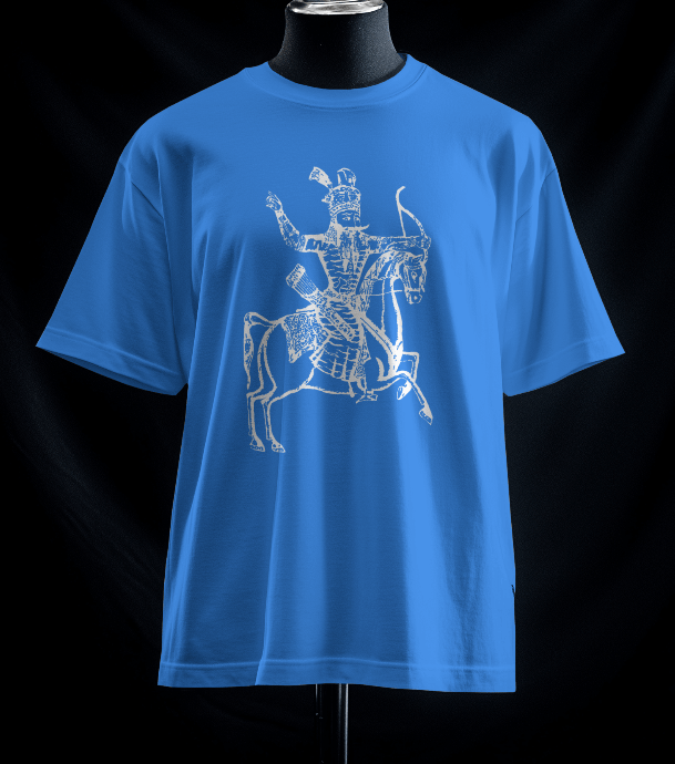 تیشرت جهان پهلوان (رنگ آبی) صددرصد نخ و از الیاف طبیعی تهیه و تولید شده است و از تولیدات گیومرث استایل است. این تیشرت تولید ایران است و در تولید آن از بهترین پارچه استفاده شده است. دوخت این تیشرت نیز بسیار با کیفیت و ماندگار است. بر روی این تیشرت نگاره رستم جهان پهلوان ایران زمین و شاهنامه نقش بسته است.