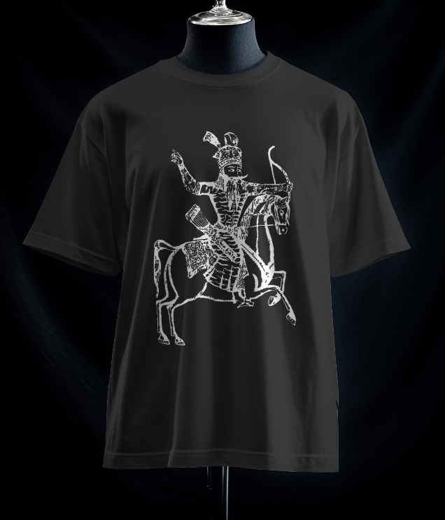 تیشرت جهان پهلوان (رنگ مشکی) صددرصد نخ و از الیاف طبیعی تهیه و تولید شده است و از تولیدات گیومرث استایل است. این تیشرت تولید ایران است و در تولید آن از بهترین پارچه استفاده شده است. دوخت این تیشرت نیز بسیار با کیفیت و ماندگار است. بر روی این تیشرت نگاره رستم جهان پهلوان ایران زمین و شاهنامه نقش بسته است.