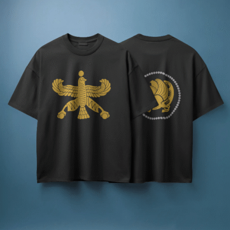 تیشرت حماسه (رنگ سرخ) صددرصد نخ و از الیاف طبیعی تهیه و تولید شده است و از تولیدات گیومرث استایل است. این تیشرت تولید ایران است و در تولید آن از بهترین پارچه استفاده شده است. دوخت این تیشرت نیز بسیار با کیفیت و ماندگار است. بر روی این تیشرت نگاره ای نفیس از شاهنامه نقش بسته است.
