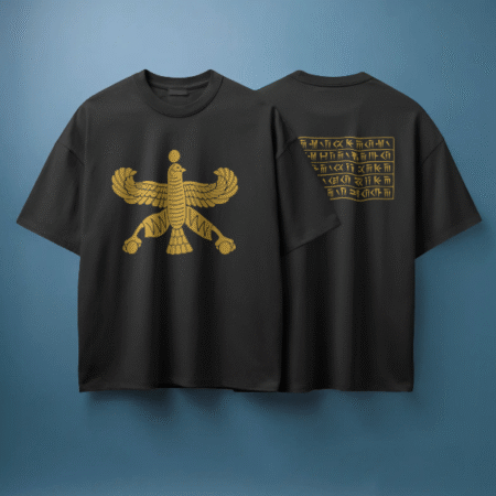 تیشرت حماسه (رنگ سفید)صددرصد نخ و از الیاف طبیعی تهیه و تولید شده است و از تولیدات گیومرث استایل است. این تیشرت تولید ایران است و در تولید آن از بهترین پارچه استفاده شده است. دوخت این تیشرت نیز بسیار با کیفیت و ماندگار است. بر روی این تیشرت نگاره ای نفیس از شاهنامه نقش بسته است.
