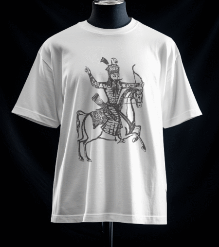 تیشرت خروش رستم (رنگ سفید) صددرصد نخ و از الیاف طبیعی تهیه و تولید شده است و از تولیدات گیومرث استایل است. این تیشرت تولید ایران است و در تولید آن از بهترین پارچه استفاده شده است. دوخت این تیشرت نیز بسیار با کیفیت و ماندگار است. بر روی این تیشرت نگاره رستم پهلوان اسطوره ای ایران زمین و شاهنامه نقش بسته است.
