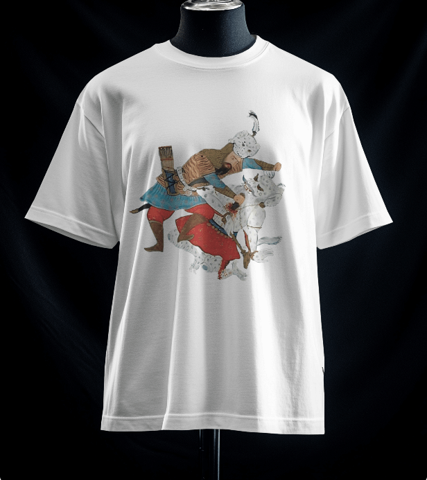 تیشرت خوان هفتم نبرد رستم با دیو سپید را به تصویر کشیده است.