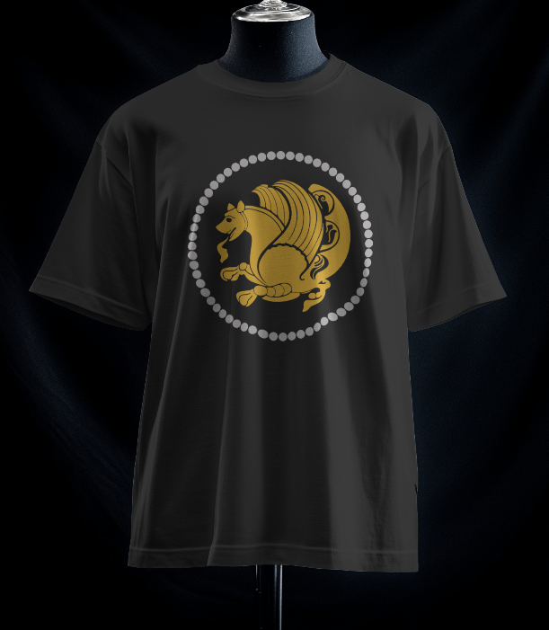 بر روی این تیشرت آستین کوتاه نگاره سیمرغ ساسانی نقش بسته است.