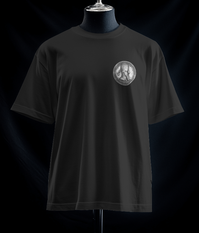 تیشرت سکه اردشیر (رنگ مشکی) یکی دیگر از تیشرت های مجموعه نشان افتخار است. بر روی این تیشرت سکه اردشیر به شکل کوچک و بر روی سینه نقش بسته است.