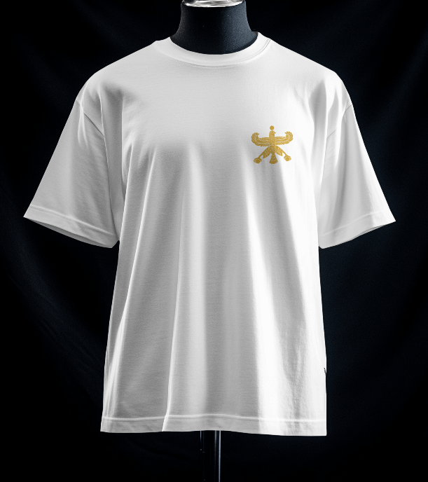 تیشرت شهباز هخامنشی (رنگ سفید) یکی دیگر از تیشرت های مجموعه نشان افتخار است. بر روی این تیشرت شهباز زرین هخامنشی به شکل کوچک و بر روی سینه نقش بسته است.