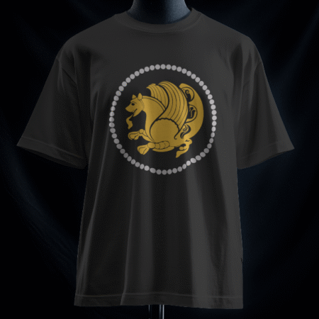 تیشرت نشان افتخار گاو بالدار (رنگ سفید) یکی دیگر از تیشرت های مجموعه نشان افتخار است. بر روی این تیشرت گاو بالدار به شکل کوچک و بر روی سینه نقش بسته است.