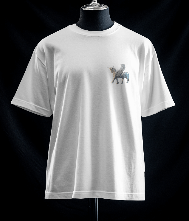 تیشرت نشان افتخار گاو بالدار (رنگ سفید) یکی دیگر از تیشرت های مجموعه نشان افتخار است. بر روی این تیشرت گاو بالدار به شکل کوچک و بر روی سینه نقش بسته است.