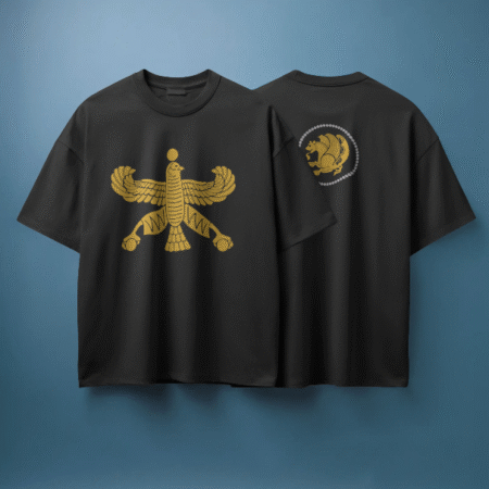 تیشرت نیایش داریوش بزرگ به خط میخی سرخ (رنگ آبی) صددرصد نخ و از الیاف طبیعی تهیه و تولید شده است و از تولیدات گیومرث استایل است. این تیشرت تولید ایران است و در تولید آن از بهترین پارچه استفاده شده است. دوخت این تیشرت نیز بسیار با کیفیت و ماندگار است. بر روی این تیشرت نیایش داریوش بزرگ به خط میخی به رنگ سرخ نقش بسته است.
