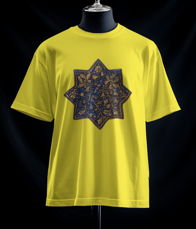 تیشرت کاشی لاجوردی هشت پر (رنگ زرد) صددرصد نخ و از الیاف طبیعی تهیه و تولید شده است و از تولیدات گیومرث استایل است. این تیشرت تولید ایران است و در تولید آن از بهترین پارچه استفاده شده است. دوخت این تیشرت نیز بسیار با کیفیت و ماندگار است. بر روی این تیشرت کاشی لاجوردی هشت پر نقش بسته است.