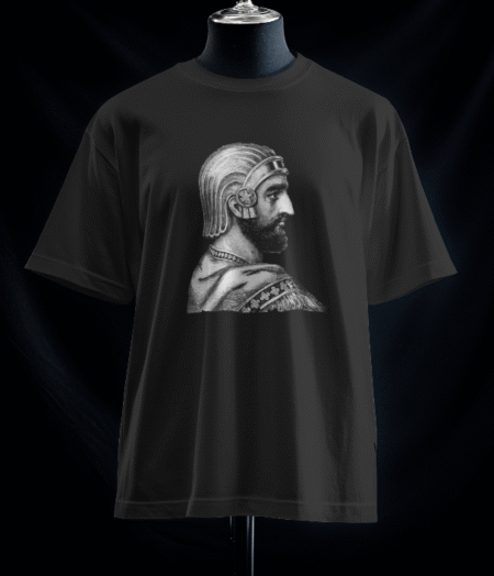 بر روی این تیشرت آستین کوتاه نگاره کوروش بزرگ نقش بسته است.