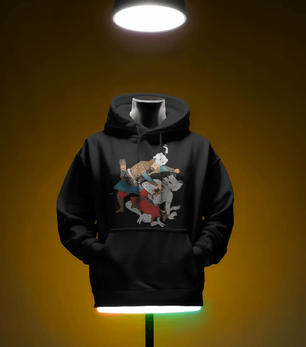 هودی خوان هفتم (رنگ مشکی) از پارچه دورس ۳ نخ تو کرکی تهیه و تولید شده است و از تولیدات گیومرث استایل است. این هودی تولید ایران است و در تولید آن از با کیفیت ترین پارچه استفاده شده است. دوخت این هودی نیز بسیار با کیفیت و ماندگار است. بر روی این هودی رستم در خوان هفتم نقش بسته است.