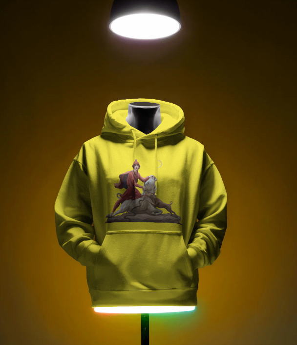 هودی مهر یا میترا (رنگ زرد) از پارچه دورس ۳ نخ تو کرکی تهیه و تولید شده است و از تولیدات گیومرث استایل است. این هودی تولید ایران است و در تولید آن از با کیفیت ترین پارچه استفاده شده است. دوخت این هودی نیز بسیار با کیفیت و ماندگار است. بر روی این هودی نگاره مهر یا میترا نقش بسته است.